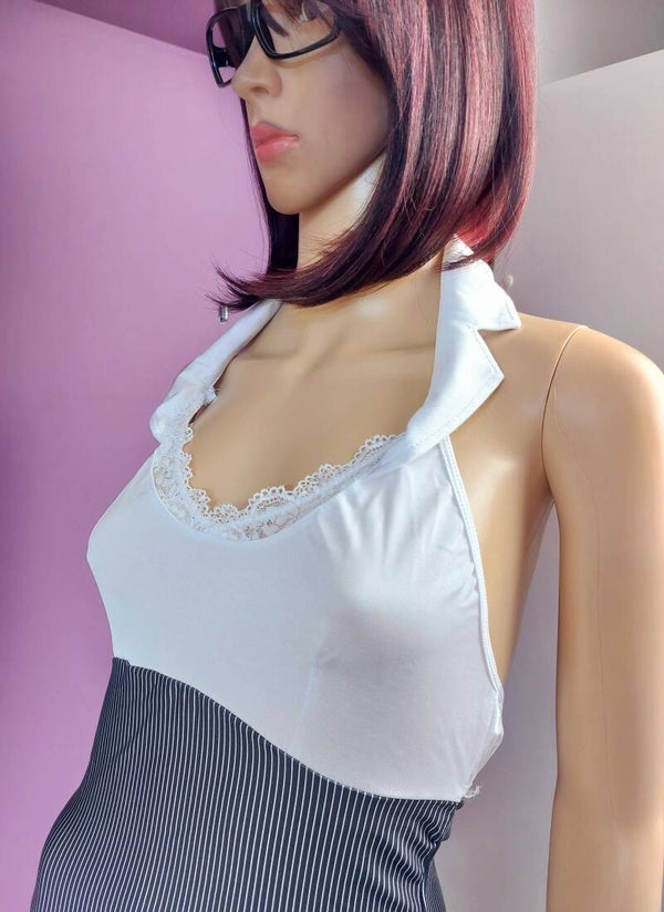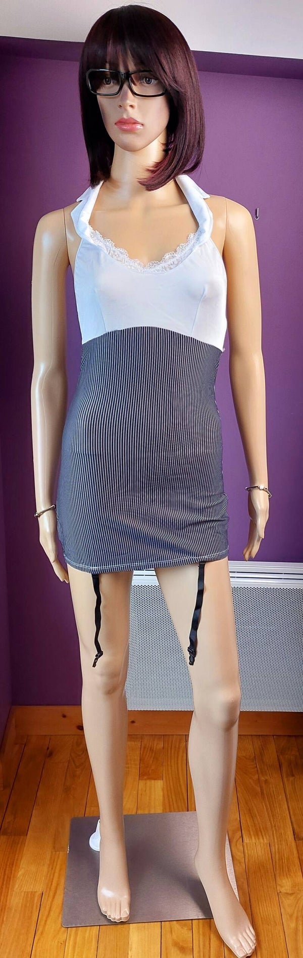 Cet ensemble joue parfaitement entre élégance professionnelle et sensualité assumée, idéal pour pimenter vos soirées, jeux de rôle ou moments glamour.