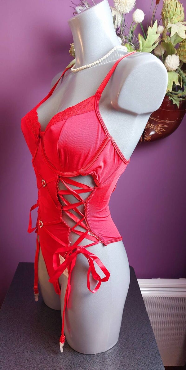 Body rouge glamour lacets & strass - sublime et raffiné Taille M 38