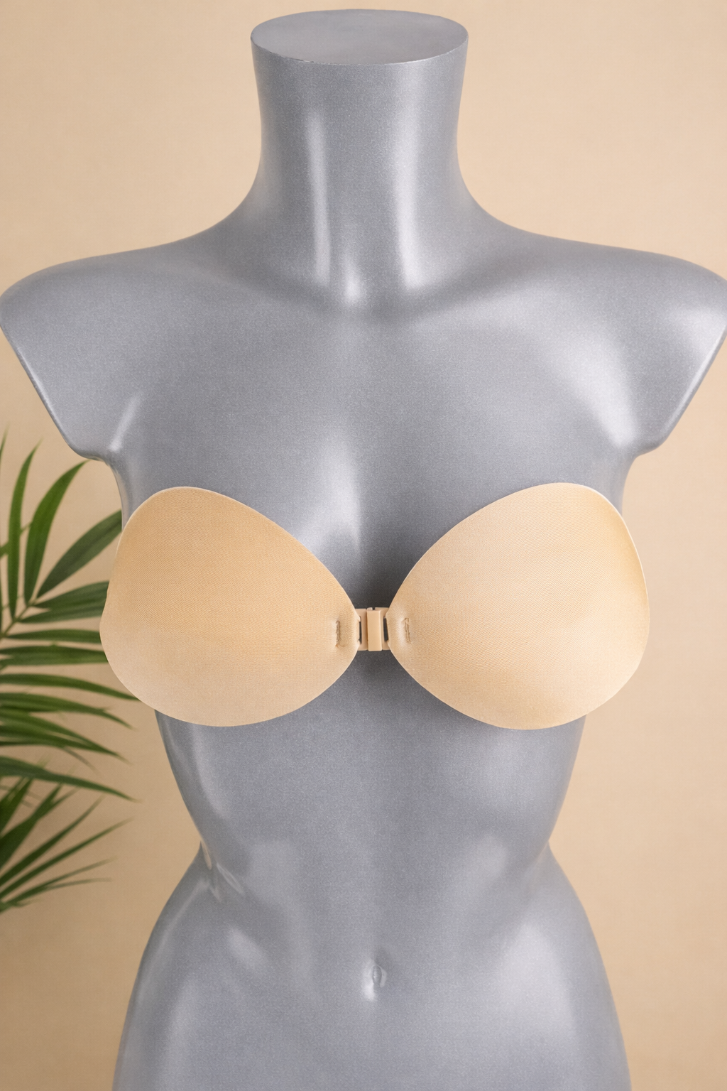 Soutien-gorge push-up auto-adhésif couleur chair, idéal pour un maintien discret tout en offrant un joli effet galbant.