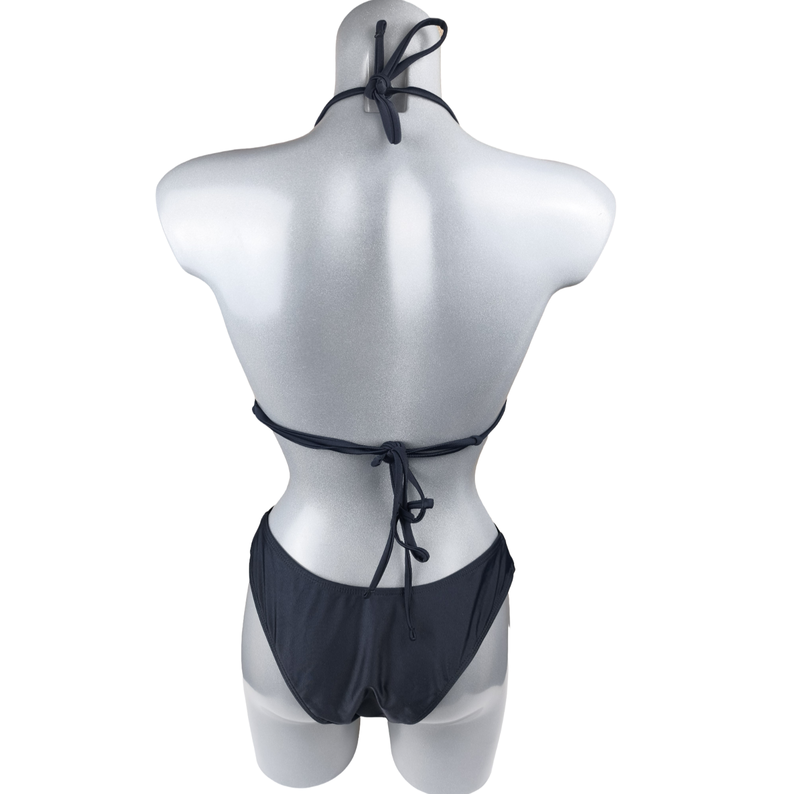Bretelles et liens ajustables au cou et dans le dos pour un maintien personnalisé. Haut triangle noir avec imprimé graphique coloré, liens à nouer au cou et au dos pour ajuster le maintien.