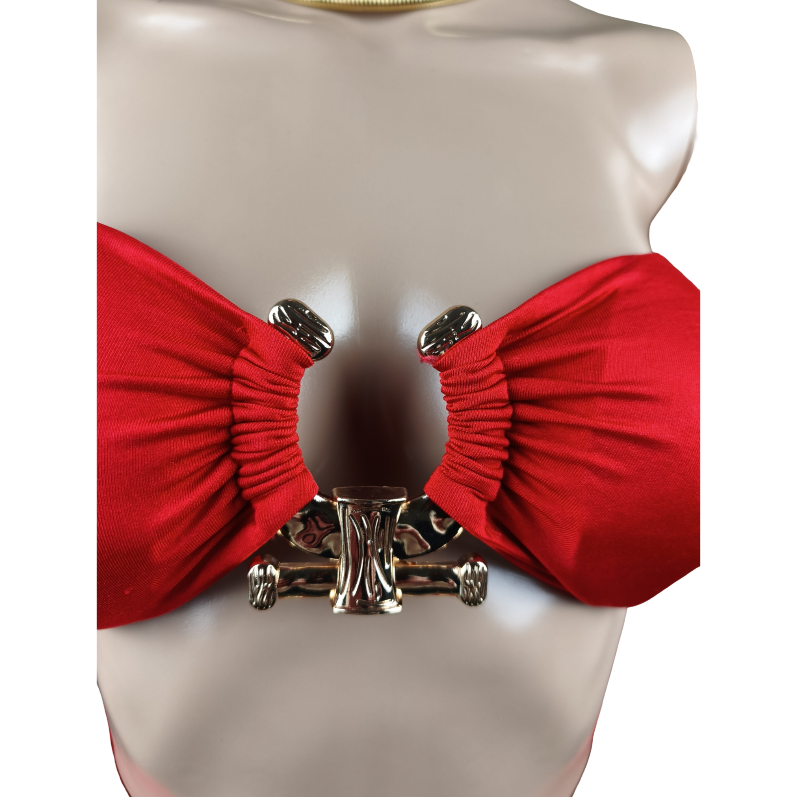 Ensemble 2 pièces rouge avec bijoux métalliques et asymétrique – Taille XS/S (34/36)