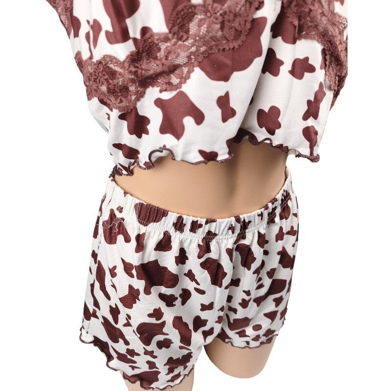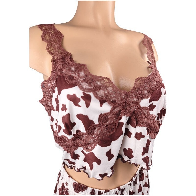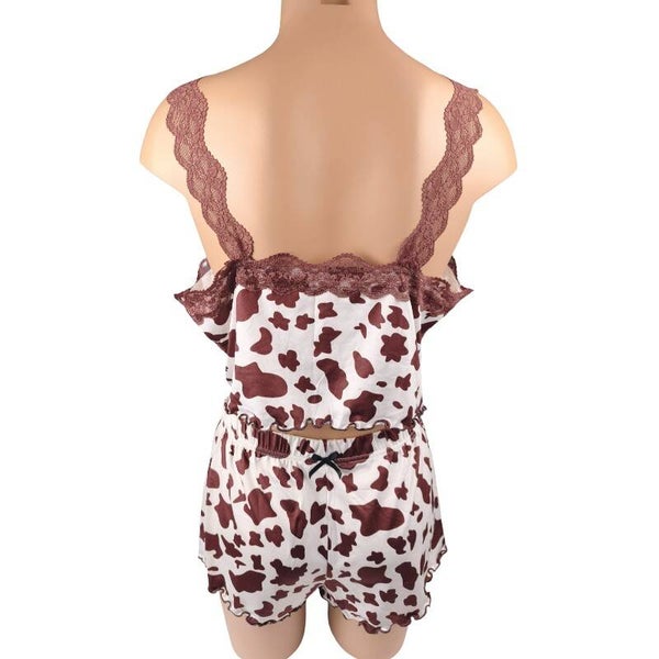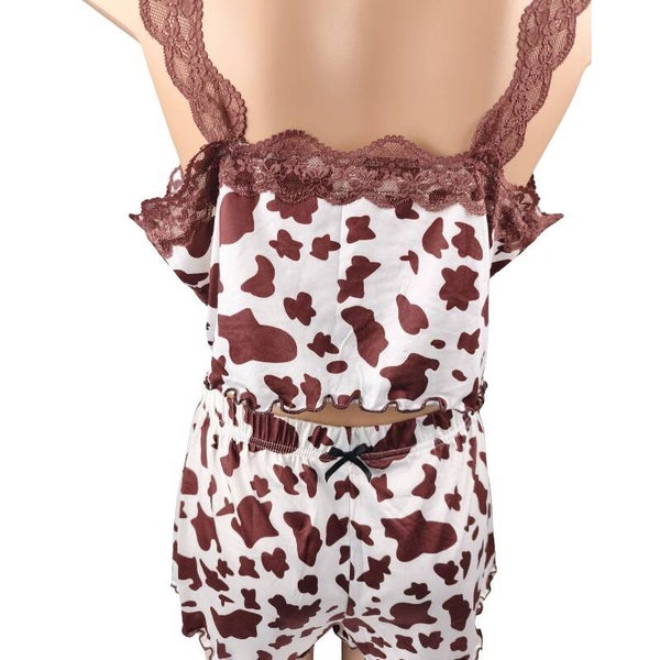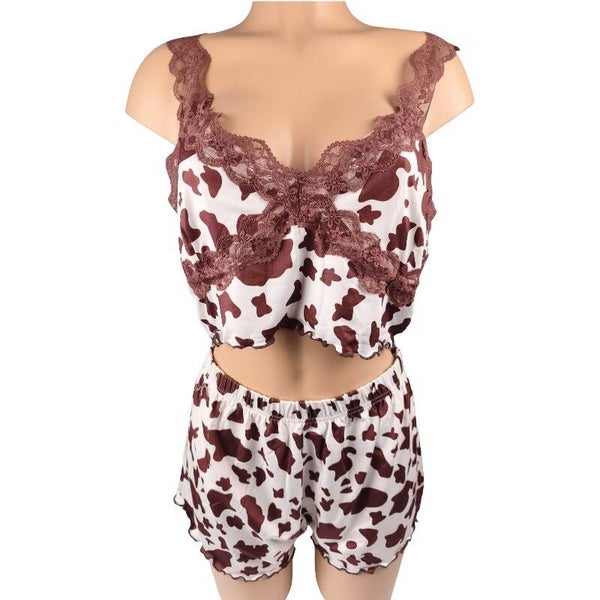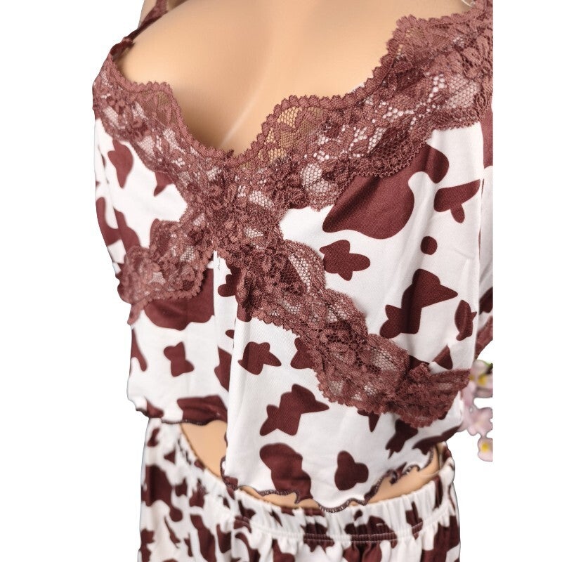 Ensemble pyjama imprimé vache & dentelle look tendance & fun / Taille XL 42