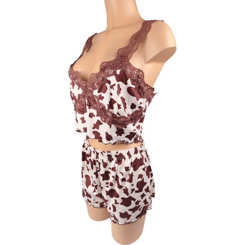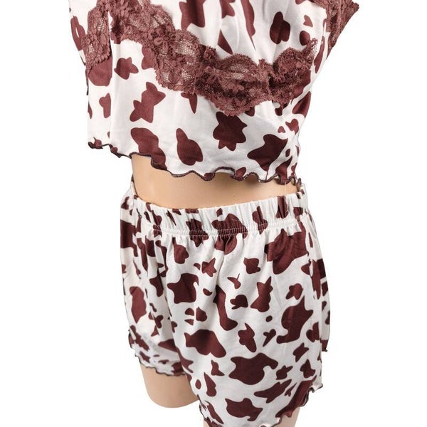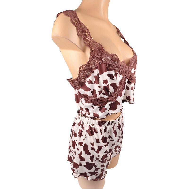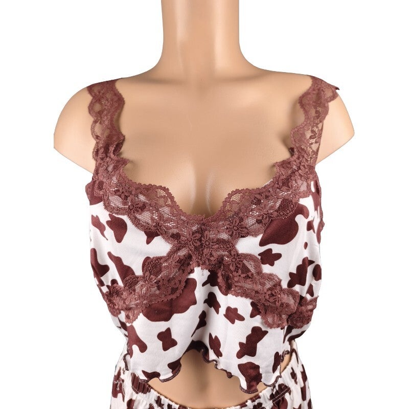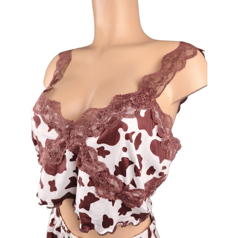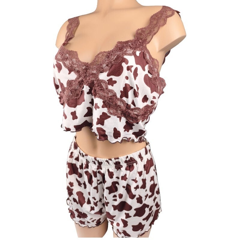 Ensemble pyjama imprimé vache & dentelle look tendance & fun / Taille XL 42