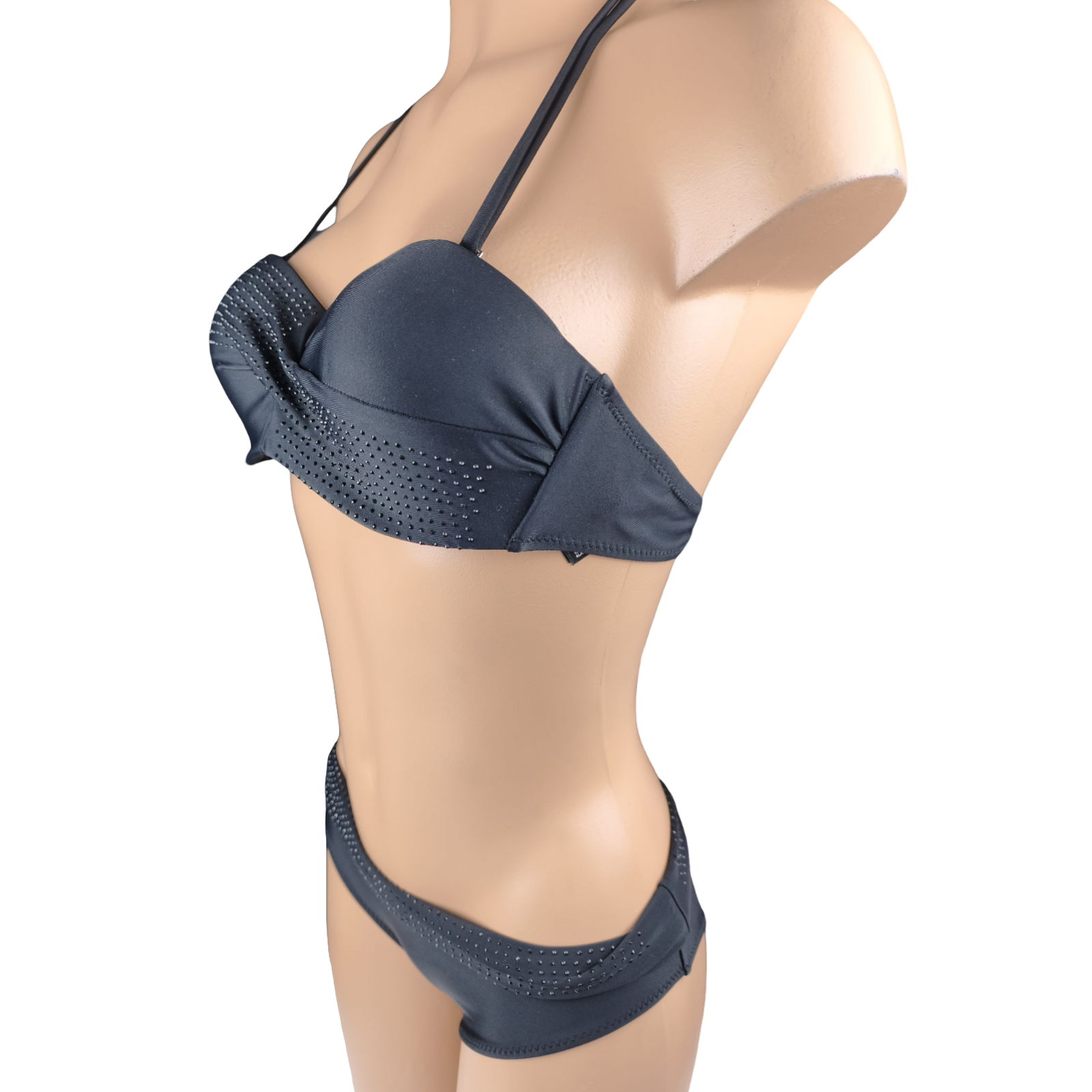 Maillot de bain bikini deux pièces avec strass noirs look chic & féminin / Taille XS 34