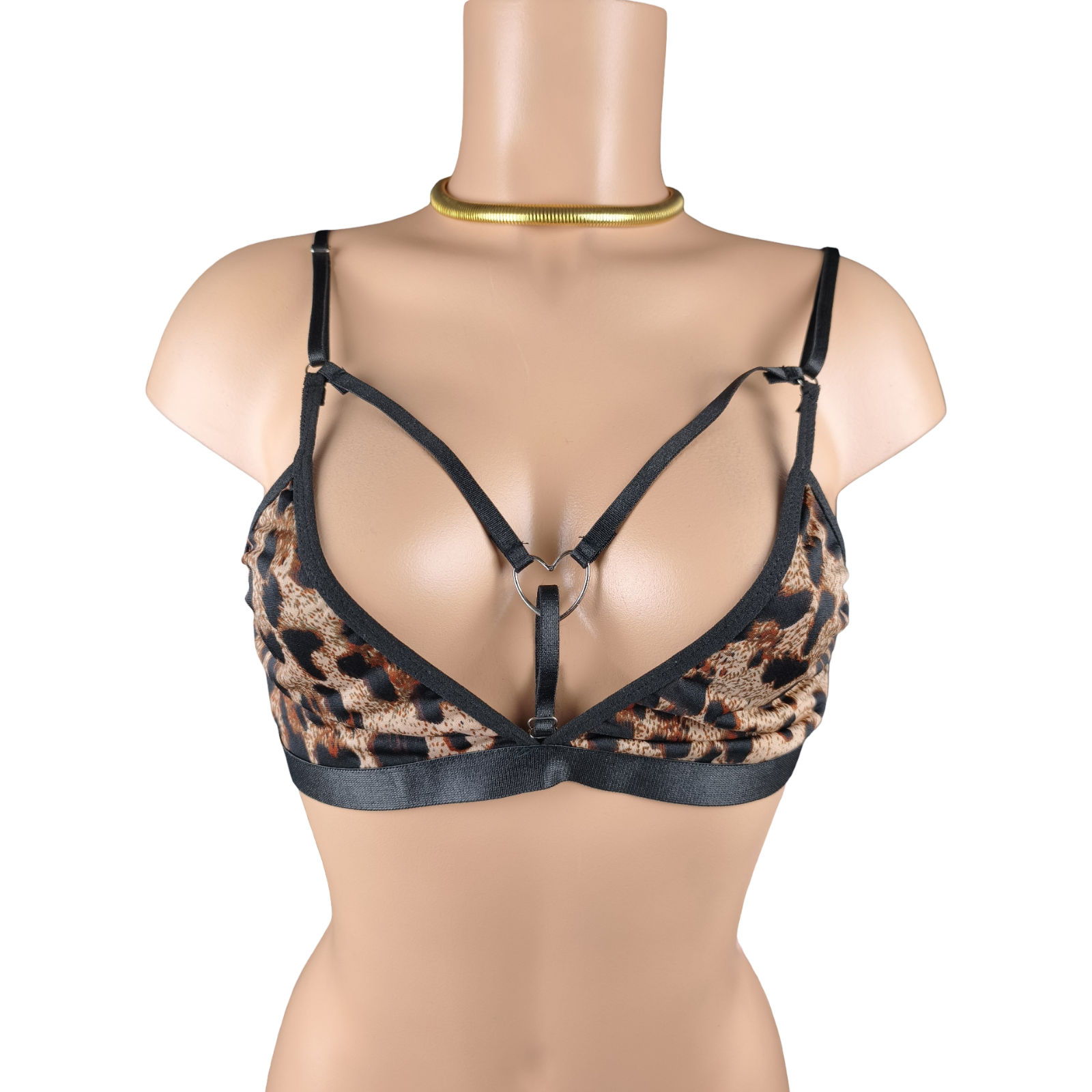 Haut forme triangle avec imprimé léopard, bretelles réglables pour un ajustement optimal.