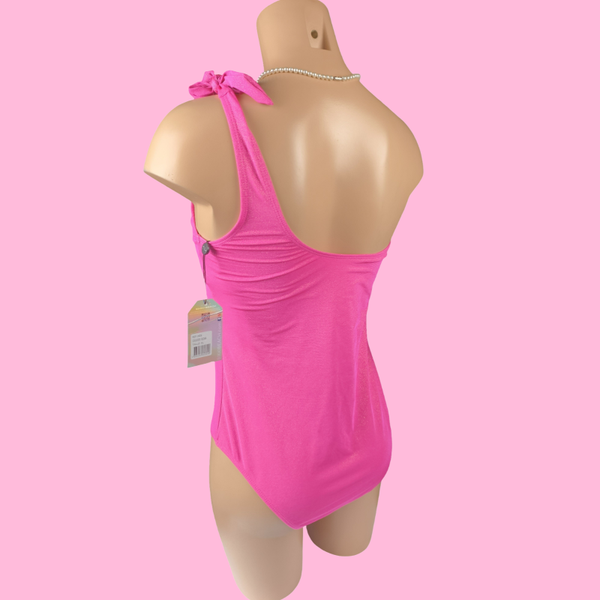 Un style glamour, moderne et féminin avec sa coupe asymétrique apporte une touche originale et tendance, tandis que le rose éclatant sublime le bronzage.